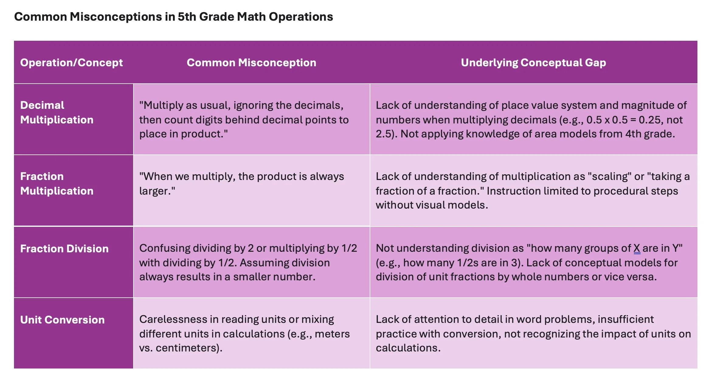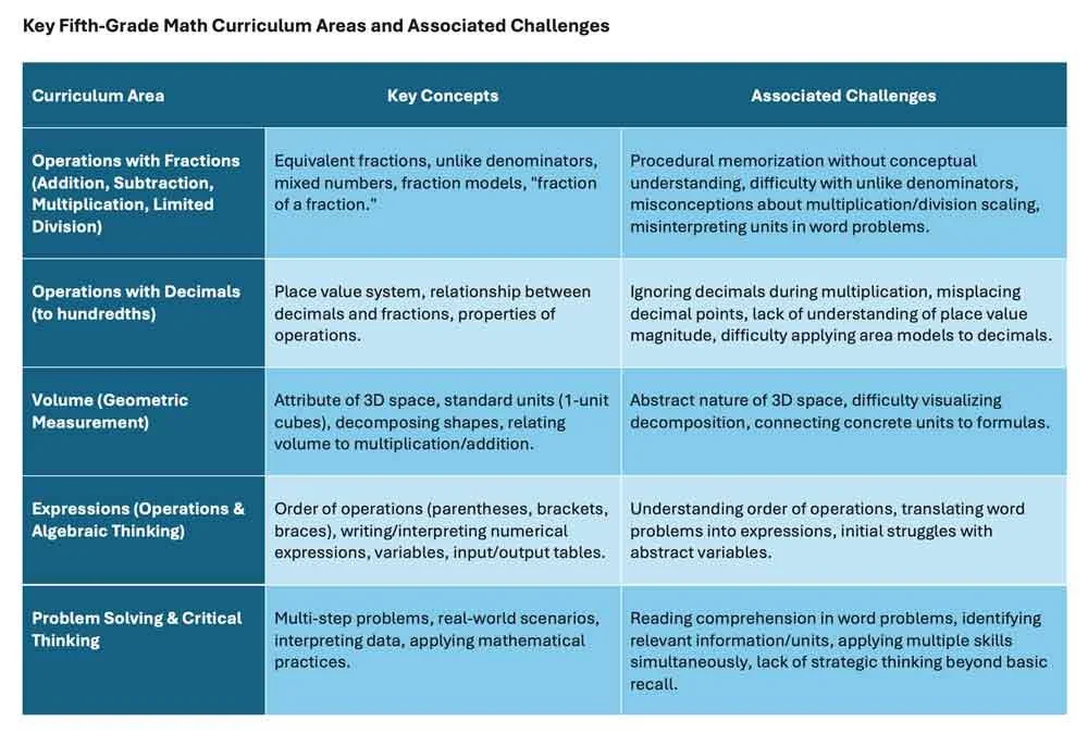 The cumulative nature of math means that foundational gaps from 5G, particularly in areas like fractions & decimals, become critical barriers to understanding middle school algebra & geometry
