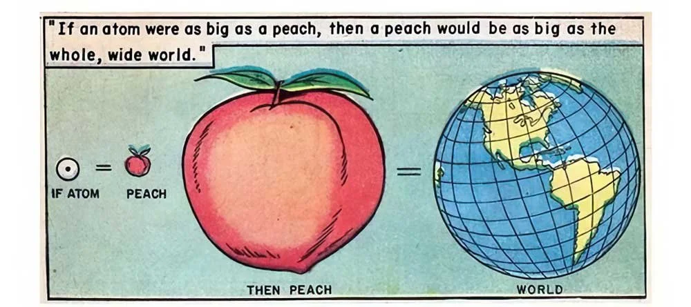 If an atom were as large as a peach, how big would the peach be? (Hint: Look at one of the illustrations below.)