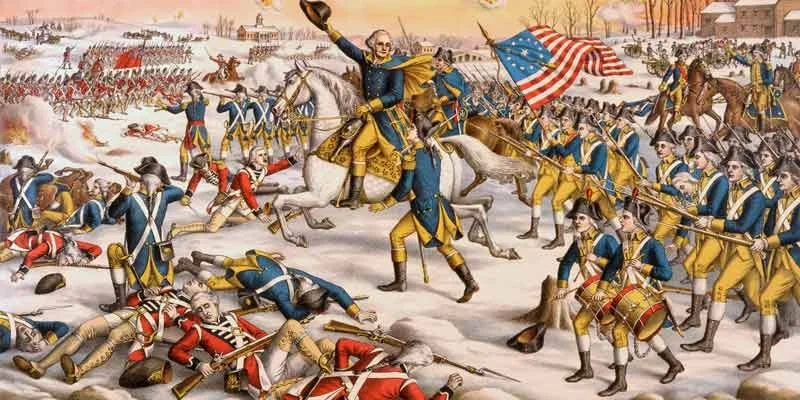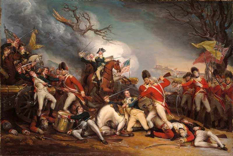 Look at the two paintings of the 1777 Battle of Princeton below.