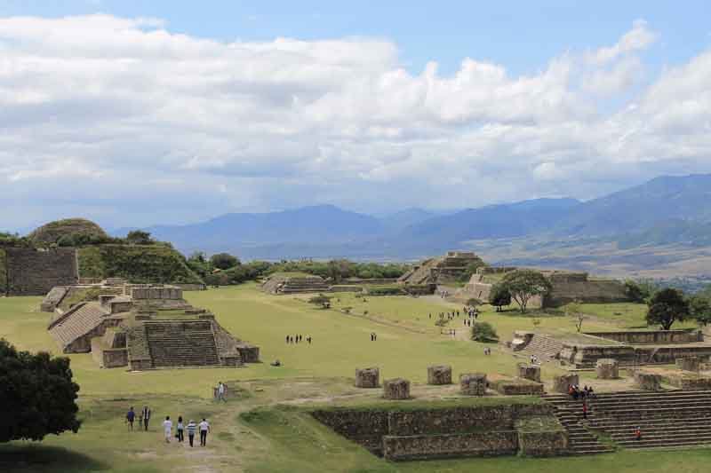 The Zapotec archaeological site at the ancient city of Monte Albán has monumental buildings, ball courts, tombs and grave goods, including finely worked gold jewelry.