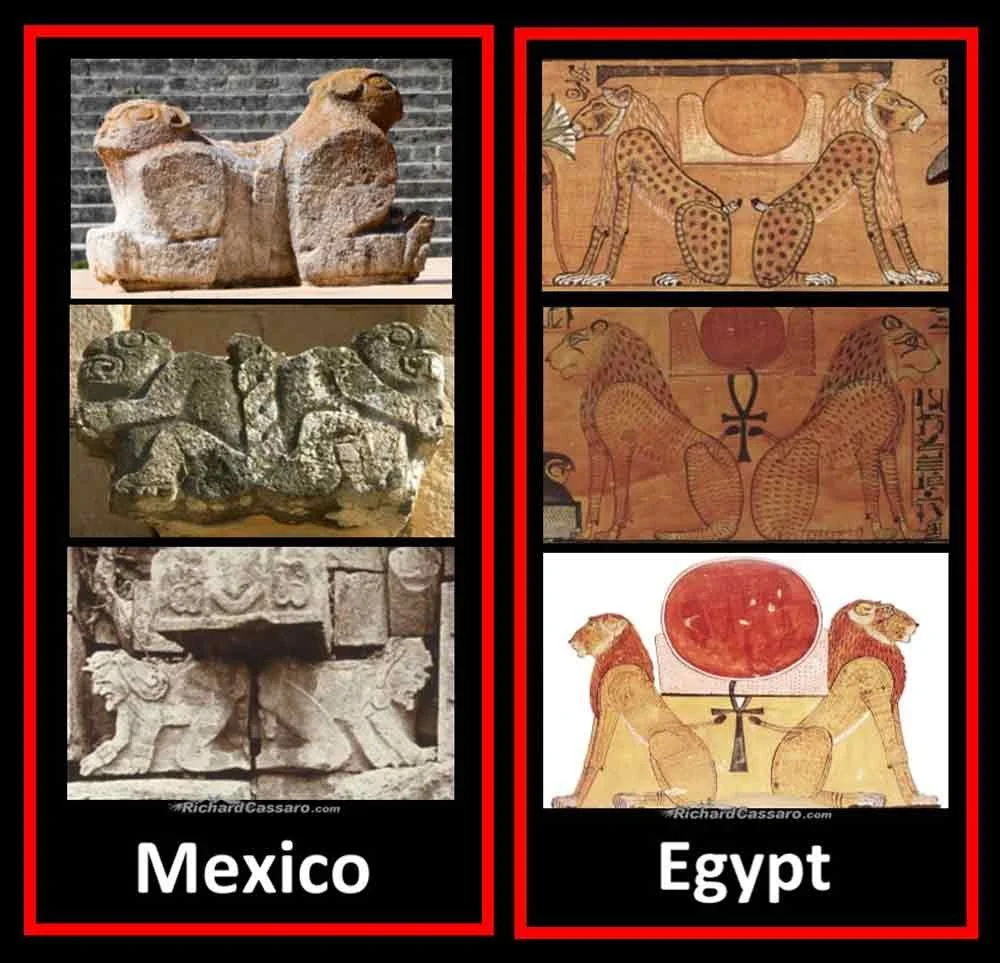 Among the many other points are that Mesoamerican pyramids are derived from the pyramids of Egypt and Nubia.