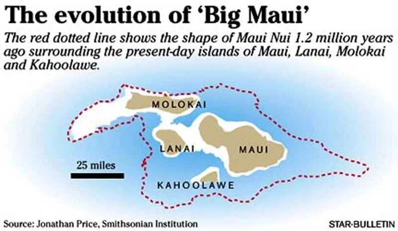 Maui is part of a much larger unit, Maui Nui, that includes the islands of Lānaʻi, Kahoʻolawe, Molokaʻi, and the now submerged Penguin Bank.