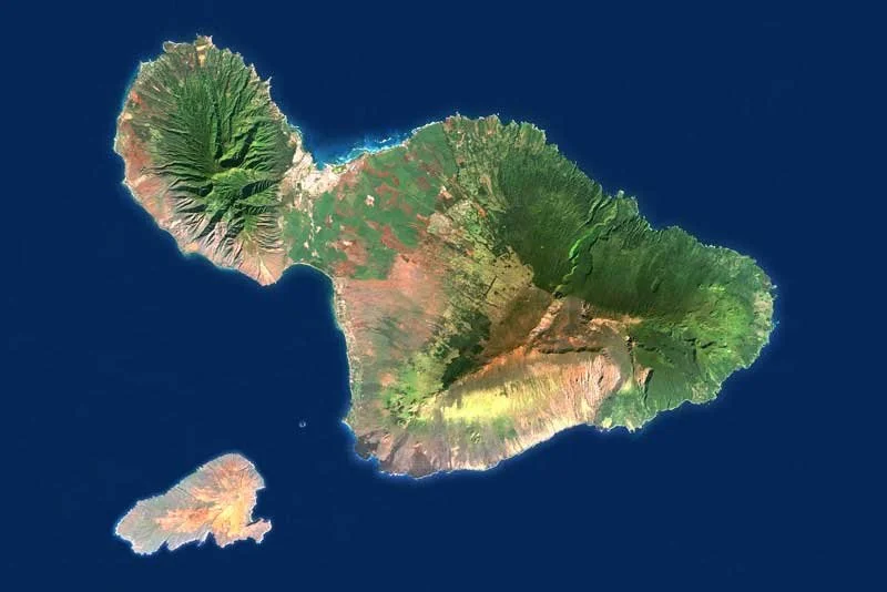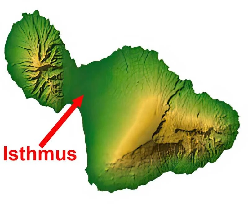 Maui Island is also called the "Valley Isle" for the large isthmus connecting its northwestern and southeastern volcanic masses.