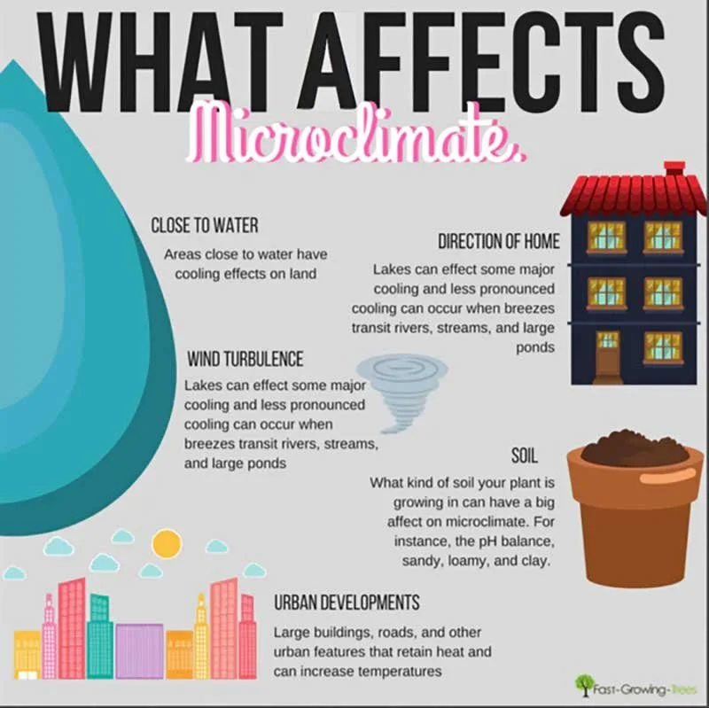 A microclimate is the climate of a small area that differs from the climate of the surrounding area.