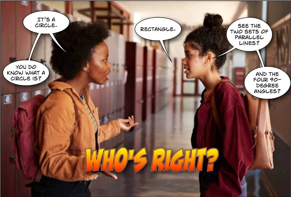 The other says, “No, the cylinder is a rectangle!”