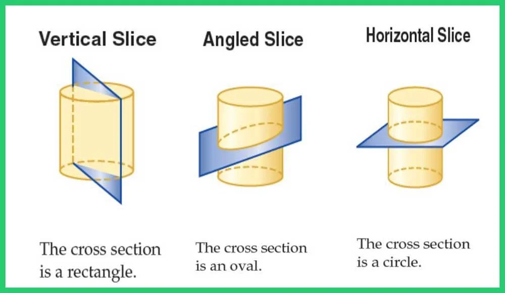 If I look at a 2D slice of a cylinder, what shape might I see?