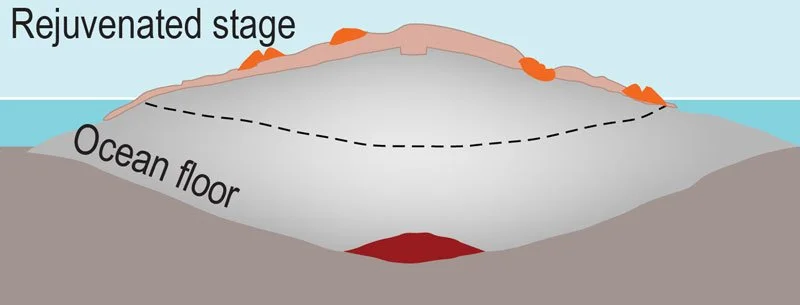 Then, rejuvenated stage volcanism began because so much of the West Maui volcano had eroded away that it actually caused some minor uplift to occur.